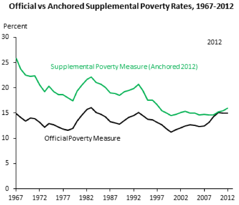 Measured correctly the poverty rate fell, and kept falling. And if it has flat-lined during the past decade or so, The White House argues this was not because policy was less effective, but rather because economic growth became less and less pro-poor.