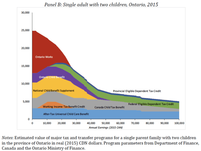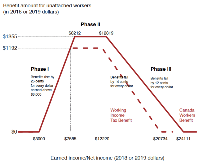 This program was inspired by the Earned Income Tax Credit, the EITC, a longstanding American program that was expanded as a part of welfare reform during the 1990s, a reform that downplayed unconditional income support and introduced work requirements to promote labour force attachment.