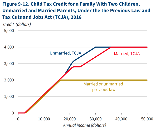 The maximum benefit for couples and single parents is $2,335, which phases out completely at earnings above about $36,500.