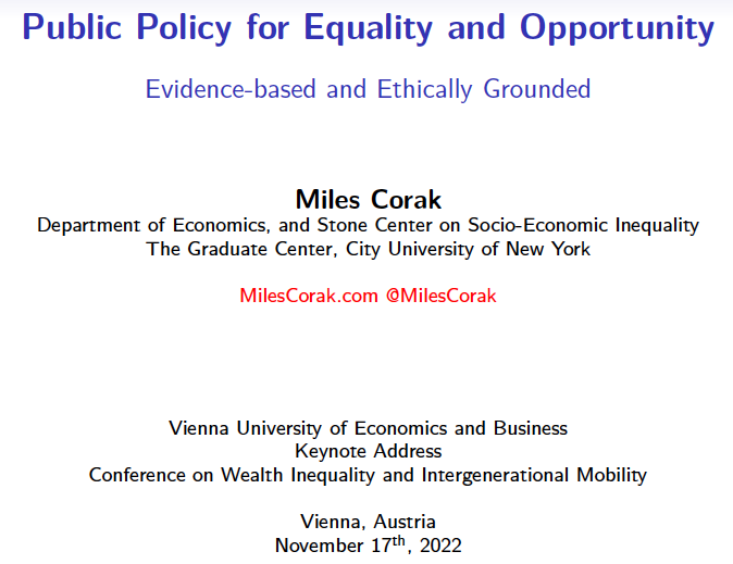 This is the argument I make in a keynote lecture that I have had the privilege to give, first on October 20th 2022 to the 8th Annual Congress de Economía y de Políticas Públicas, SobreMéxico in Mexico City, and second on November 17th 2022 to the Conference on Wealth Inequality and Intergenerational Mobility at the Vienna University of Economics and Business in Vienna.