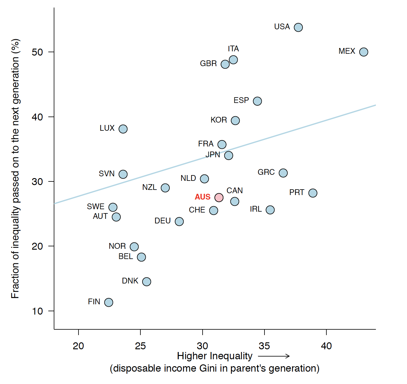 Inequality begets inequality. Up to 50% of income inequality is passed on to the next generation in countries like the United Kingdom, Italy, and the United States, but only 20% or even less in countries like Norway, Denmark and Finland, where there is a much smaller gap between parent incomes.