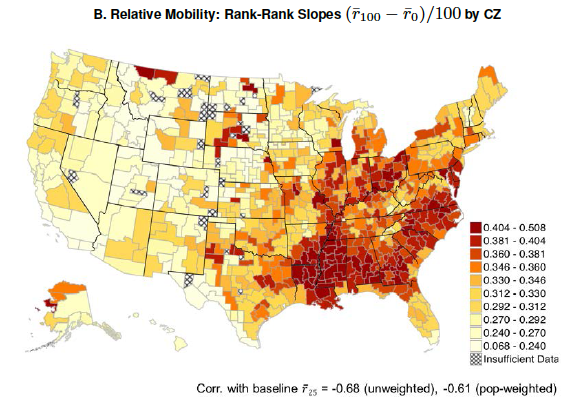 Chetty, Raj, Nathaniel Hendren, Patrick Kline, and Emmanuel Saez (2014). “Where is the Land of Opportunity? The Geography of Intergenerational Mobility in the United States.” Quarterly Journal of Economics. 129 (4): 1553–1623.