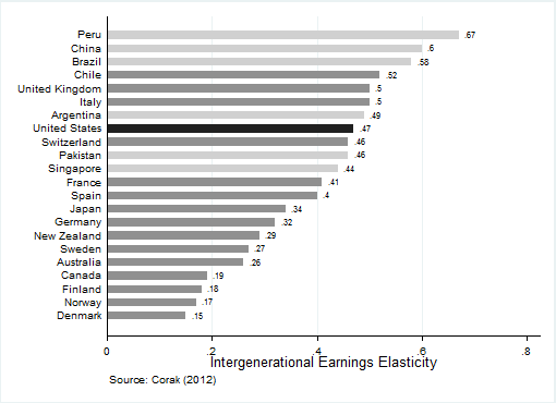 Miles Corak (2013), “Inequality from Generation to Generation: The United States in Comparison,” in Robert Rycroft (editor), The Economics of Inequality, Poverty, and Discrimination in the 21st Century, ABC-CLIO.