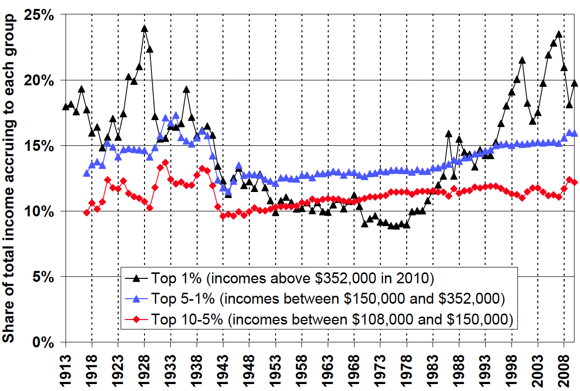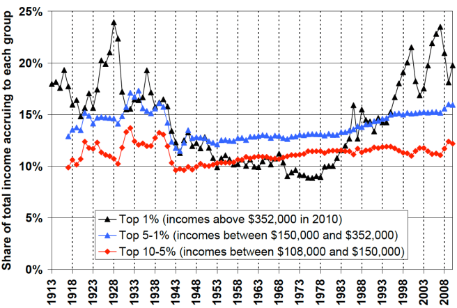 Emmanuel Saez of the University of California at Berkeley has updated his work with Thomas PIketty on the evolution of US Top Incomes to 2010.