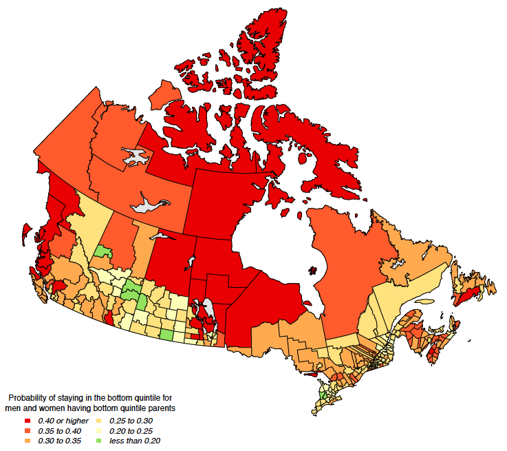 Poor children are twice as likely to grow up to be poor adults in some Canadian communities than in others