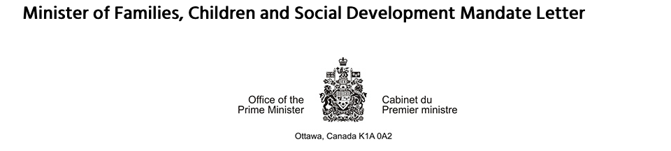 My Mandate Letter for the Minister of Families, Children and Social Development